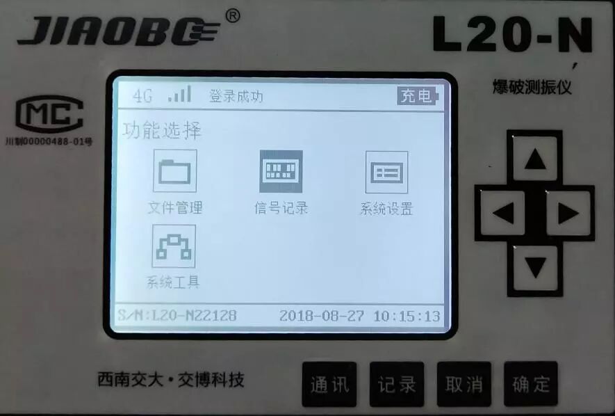 (2)4G天线与仪器连接,登陆模式选择4G登陆,如果不是4G模式,点击“通信”键调节到4G模式;