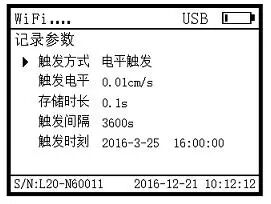 (默认触发方式选择电平触发,触发电平根据具体情况设置大小,默认设置为0.1cm/s,储存时长2s)