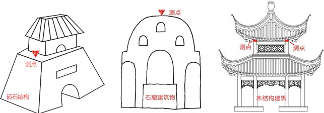 爆破振动古建筑物测点布置(同房屋振动监测一致)